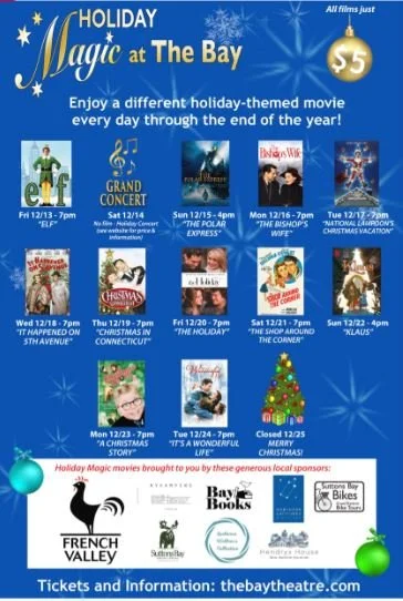 Enjoy a different holiday-themed movie every day through the holidays at the historic Suttons Bay Theatre. All films are just $5 per person.